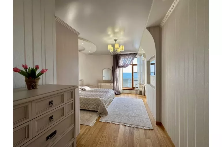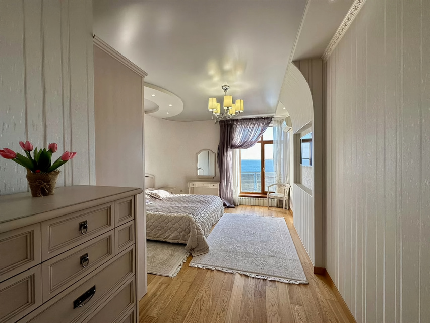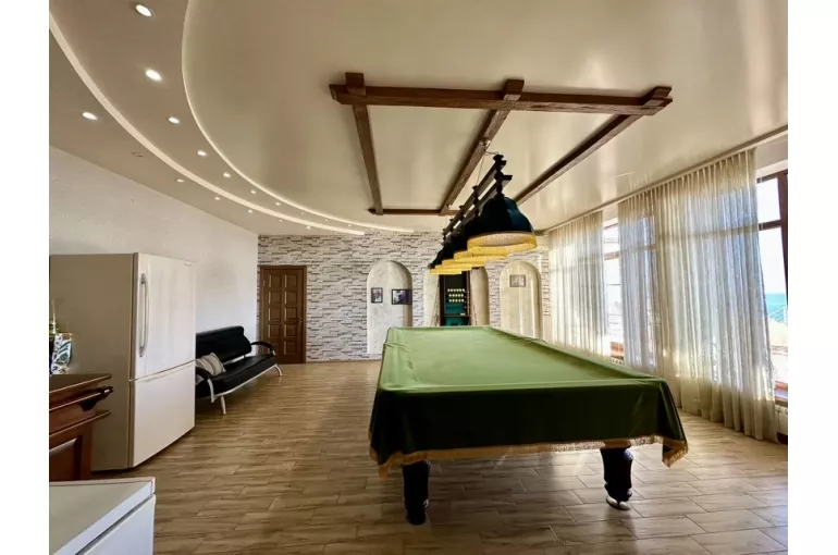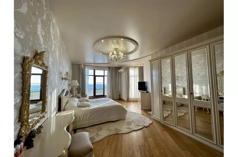 Характеристика: Вилла площадью 513,1 м² включает три просторные спальни и пять санузлов. Просторные комнаты с большими окнами наполняют дом светом и создают атмосферу уюта. Итальянский дизайн и качественная мебель делают интерьер стильным и комфортным. На участке площадью 6 соток расположены бассейн длиной 25 метров с функцией противотока, банкетный зал и эллинг, а также собственный выход к морю.